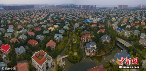 在這些航拍照片中,一棟棟造型別致的別墅鱗次櫛比地排列而開,密密麻麻地蔓延向遠方,仿佛無邊無際。四通八達的道路和點點綠色穿梭點綴于住宅之間,構成了一副讓人眼花繚亂的迷宮般景象。飛飛 攝 圖片來源:視覺中國