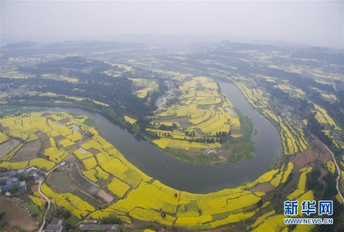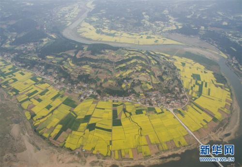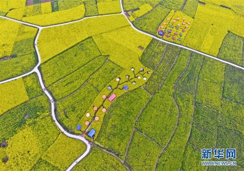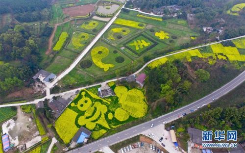 三月,四川大地的油菜花進入盛開期,不少鄉村從“種田地”向“賣風景”轉變,通過創意耕種,在田間“繪”出美麗風光圖。新華社記者 江宏景 攝