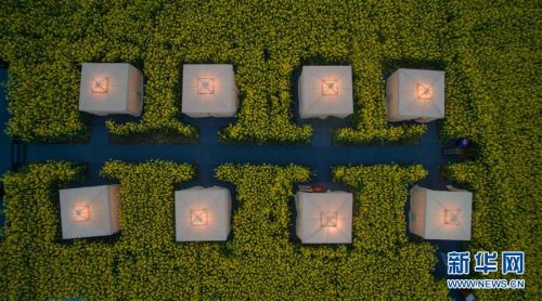 這是使用航拍器拍攝的成都崇州市重慶路的油菜花田,田間的帳篷點綴成為一道風景線(3月21日攝)。三月,四川大地的油菜花進入盛開期,不少鄉村從“種田地”向“賣風景”轉變,通過創意耕種,在田間“繪”出美麗風光圖。新華社記者 江宏景 攝
