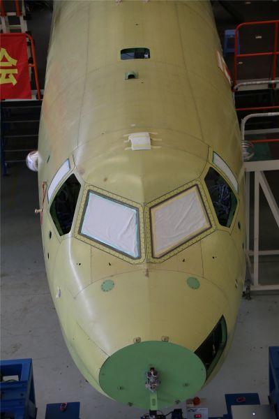 進行靜力試驗的002架機完成機頭、中機身、中后機身、后機身、尾翼等大部件交付,完成了機身結構對接和封閉區應變片粘貼。