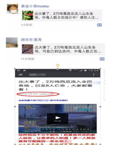 5月馬上又到了吃西瓜的天氣了。但近日,“高校學生圈”“指尖即墨”“即墨大事件”“中國黃頁”等微信公眾號陸續發布了題為《吃個西瓜1家3口去世!注意啦!這種西瓜千萬別吃!》《吃個西瓜1家3口去世!這種西瓜千萬別吃!即墨已經有人中毒!》《出大事了,2萬噸都西瓜流入全國各地,已至8人死亡,中毒人數正在統計中!》等微信消息,引來不少市民轉發,甚至不敢購買西瓜。這是真的嗎?