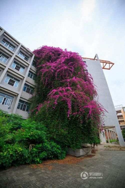 圖為學校的“鮮花瀑布”。
