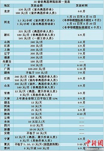 28省份高溫津貼標準一覽表 張尼 制