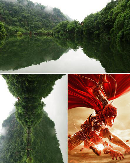 “我在峨眉山清音平湖拍下這張照片,無意中旋轉(zhuǎn)手機,發(fā)現(xiàn)山體和水中倒影連起來居然像是孫大圣,當時我和我媽就驚呆了。”楊洋告訴記者,今年是猴年,也是他母親的本命年,屬猴的人到峨眉山游玩可以免門票,所以,他們便一同去峨眉山看猴。圖為原圖。
