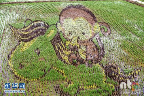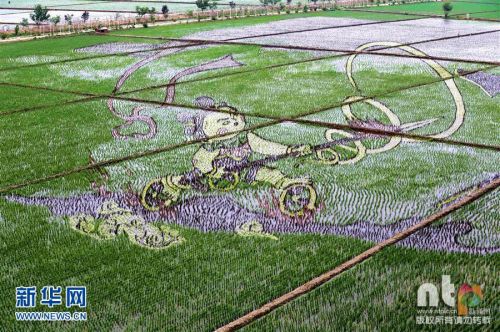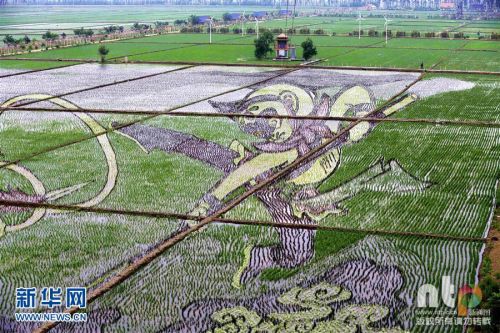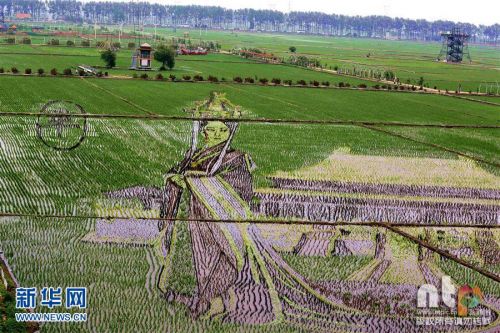 2016年6月15日,沈陽沈北新區巨幅“3D稻田畫”進入觀賞期吸引市民觀光游玩。占地面積200余畝的巨幅《大鬧天宮》、《羋月》等17幅“3D稻田畫”進入觀賞期。據了解,稻田畫先設計好要表現的圖形,利用先進的3D技術和透視技術,用矢量法定點定樁連線人工填色,種植不同品種有著不同顏色葉子的水稻,繪制出平面,立體,嘍空,線條四種不同風格稻田畫。