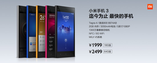 2013年9月5日,小米公司創始人CEO雷軍于北京國際會議中心連續發布兩款新品,重磅消息不斷引爆。9月,全球智能手機廠商“機戰”爆發,集中發布旗艦機。包括三星Note3、Iphone5S、索尼Xperia Z1旗艦機集中在9月發布,小米手機3的發布將代表國產手機與國際手機廠商展開史無前例的正面對抗。