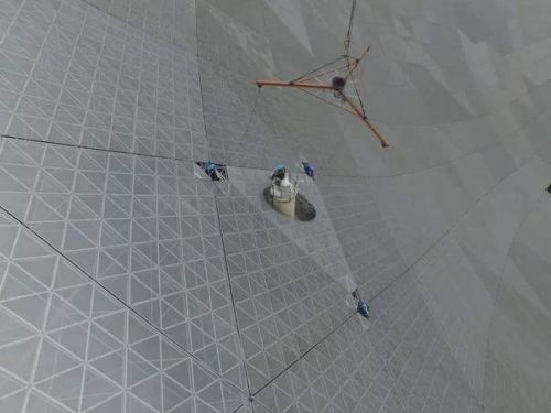 由中科院國家天文臺主持,正在貴州平塘建設的500米世界最大單口徑球面望遠鏡(英文簡稱FAST)主體工程即將完工,最后一塊反射面單元今天將完成吊裝。