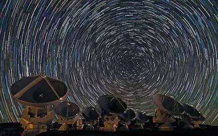 阿塔卡瑪大型毫米波天線陣位于智利北部的查南托高原,由64面口徑為12米的射電天線組成,是多個國家的研究機構合作建造的大型射電望遠鏡陣列。這里海拔五千多米,是地球上氣候最干燥的地區之一,非常適合毫米波天文觀測。