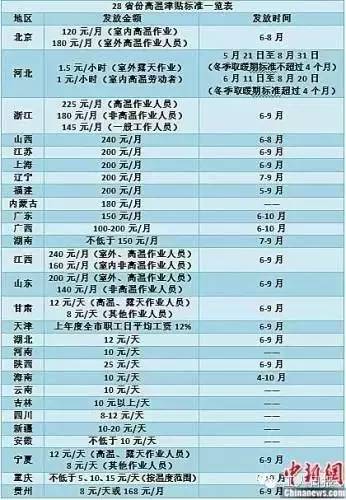 進(jìn)入6月后,不少地區(qū)迎來(lái)夏季高溫期,高溫津貼也進(jìn)入發(fā)放時(shí)間。目前,全國(guó)至少已有28個(gè)省份明確了津貼發(fā)放標(biāo)準(zhǔn)。