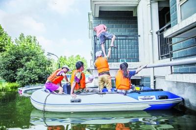 鄭志遠慢慢將小艇劃到離2樓陽臺最近的地方,孕婦的丈夫扶著她翻過欄桿,鄭志遠扶著孕婦一只腳放在船舷上,慢慢將孕婦接到船內坐穩,然后再將她丈夫扶進船內。由于第一次劃船,又滿載而歸,鄭志遠花了1個多小時才將2人成功轉移到淺水區。此時,天空還一陣一陣飄著雨,全身淋濕的鄭志遠分不清楚臉上流著的是雨水還是汗水。