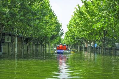 昨日13時,被湯遜湖倒灌湖水淹沒的武漢城市職業學院南校區主干道上,兩艘橡皮艇打破了水面的平靜,正緩緩向居民區進行最后搜救。