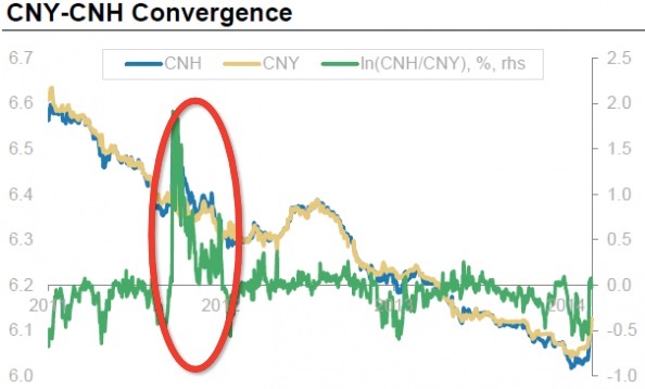 他們?cè)谝獾暮芸赡苁侨嗣駧盘桌S捎诰薮蟮奶桌臻g和較為穩(wěn)定的升值預(yù)期,人民幣的快速國(guó)際化才得以實(shí)現(xiàn)。但是現(xiàn)在這一趨勢(shì)很可能發(fā)生逆襲。