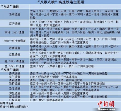 “八縱八橫”高鐵主通道。中新網記者李金磊制