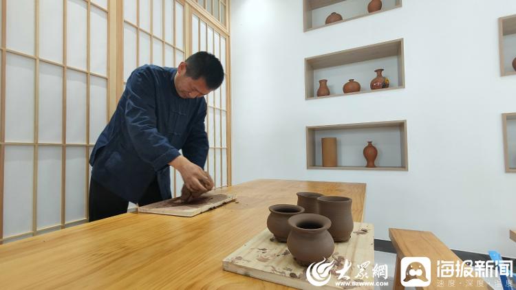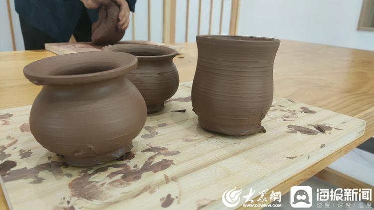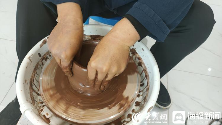 在東阿縣黃河文化體驗館,郭太星坐在拉坯機前,將澄清的泥放到拉坯機上,用腳踩著底盤,隨著拉坯機勻速旋轉,郭老師雙手不斷變換著手勢,十幾分鐘后,一盤看起來十分普通的泥漿就變成了罐體形狀。這時,再拿出一根細線從底部劃過,一件半成品的阿膠澄泥罐便呈現在了眼前。