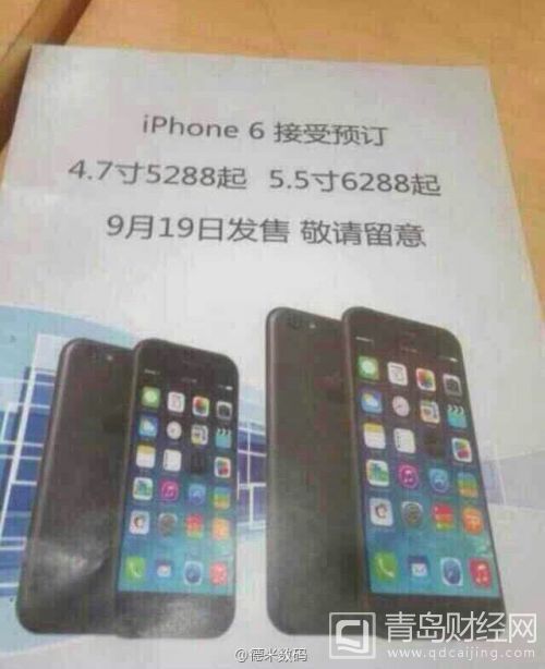 9月1日消息,中國聯通即將啟動iPhone 6合約機預約。據圈內知名人士爆料,兩個版本分別為5288元和6288元,9月19日開售。