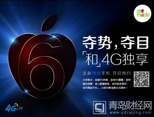 目前,中國聯通官網還未出現任何iPhone 6合約機的信息。但是北京移動,昨天傍晚相關預約界面已經掛出來,不過只是說“全新神秘手機開啟預約”。配圖是一個大大的蘋果和“6”字樣,外界大多猜測這款神秘手機是iPhone6。(如下圖)