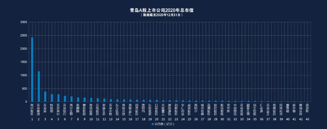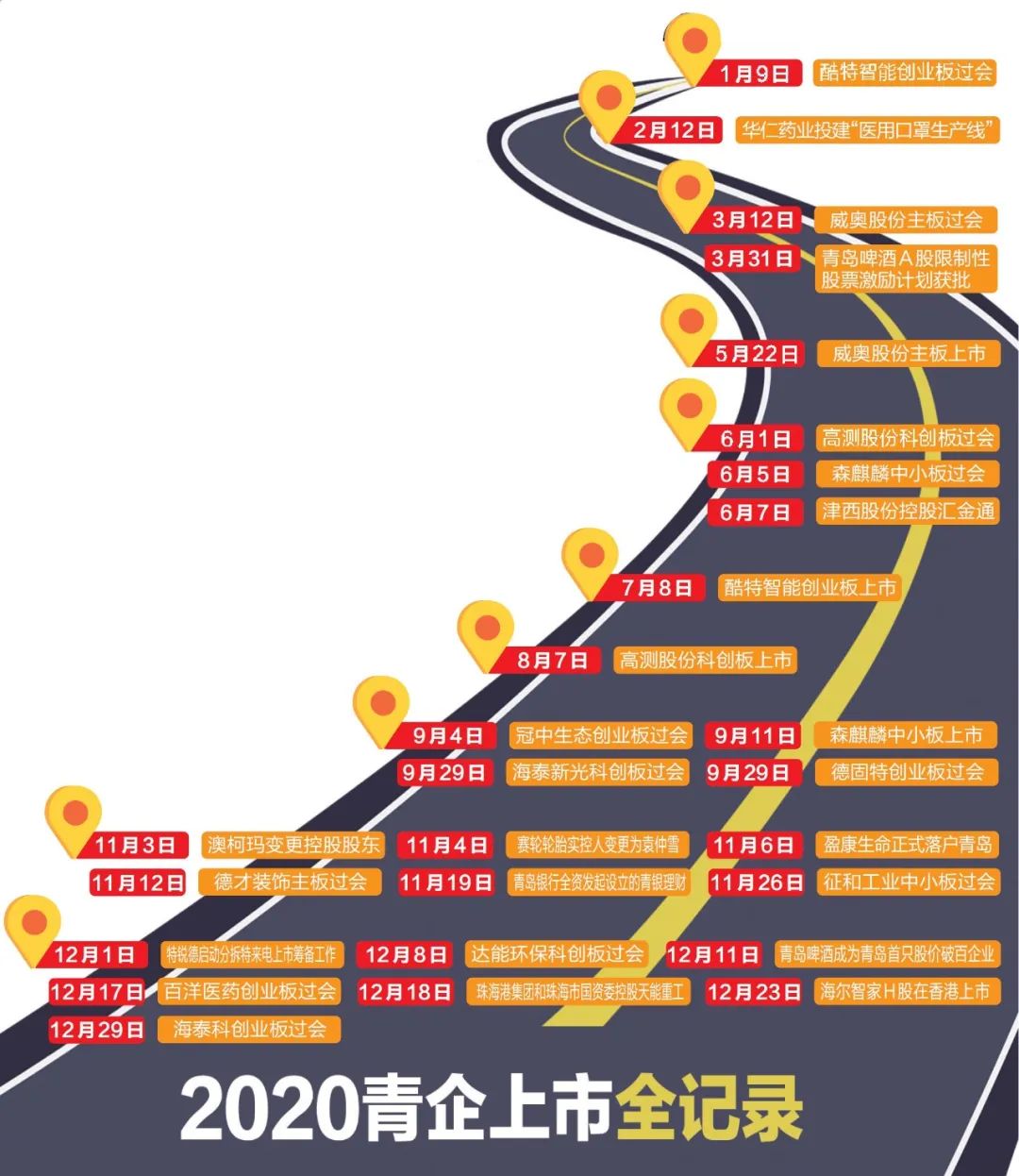 2020年,青島新增上市公司4家,主板、中小板、創業板、科創板各1家,再加上遷來的盈康生命,青島A股上市公司達到43家,總數反超煙臺,位列全省第一。