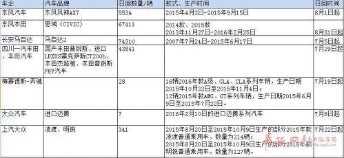 7月以來的汽車召回主要原因是安全氣囊、天窗總成、燃油吸油器、碳纖維驅動軸等存安全隱患。相關汽車公司將會以各形式向相關車主發出通知。用戶可撥打相關汽車公司客戶服務熱線或登錄國家質檢總局網站了解更多信息。