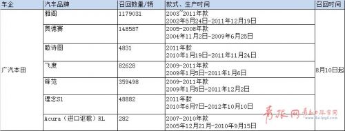 日前,廣汽本田汽車有限公司根據《缺陷汽車產品召回管理條例》的要求,向國家質檢總局備案了召回計劃,決定自2016年8月10日起,召回其生產的部分國產雅閣、奧德賽、歌詩圖、飛度、鋒范、理念S1及進口謳歌RL轎車,共計1823739輛,具體信息如下: