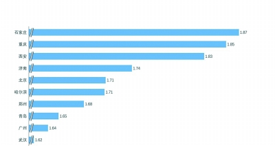 研究發(fā)現(xiàn),上半年,哈爾濱的交通不確定性最大,人們乘車出行為保證按時到達(dá)目的地,需要在平均耗時的基礎(chǔ)上,每公里多預(yù)留出2.19分鐘。此外,濟(jì)南、上海、北京和西安的城市交通不確定性也較大,分別需要為每公里出行多預(yù)留1.93、1.77、1.74和1.73分鐘。