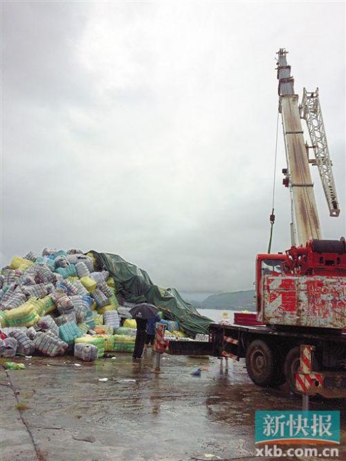 在碼頭現(xiàn)場,工作人員正用一臺(tái)吊機(jī)將這座舊衣物壘砌的“大山”一點(diǎn)點(diǎn)向上提,裝上貨運(yùn)車,再將這些沾滿細(xì)菌的舊衣物拖去銷毀。“我們已經(jīng)拖了100多噸,還有400噸衣物,起碼還需要10天時(shí)間。”一名工作人員介紹。