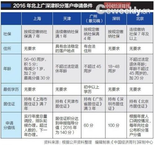 《中國經濟周刊》記者梳理發現,在積分落戶申請條件方面,持有當地居住證是北上廣深津等城市積分落戶的硬性要求。