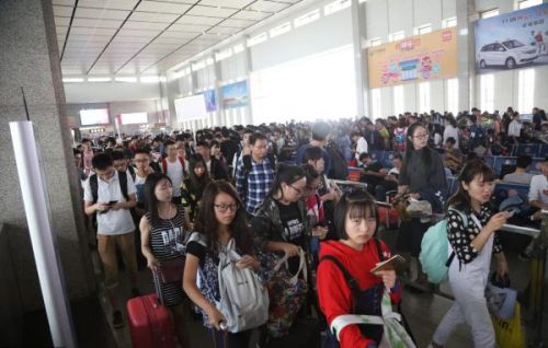2016年10月6日,湖北宜昌火車東站人潮涌動。