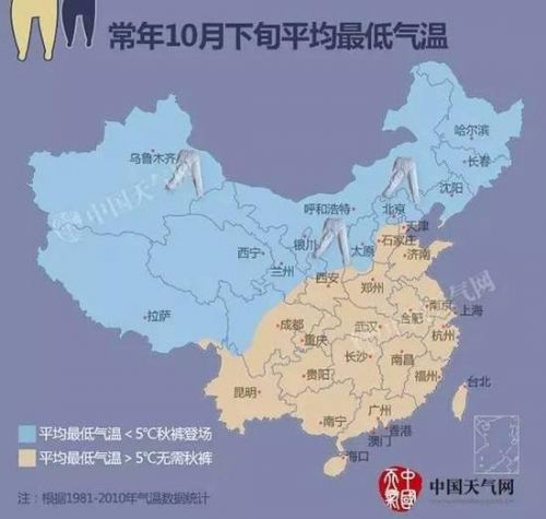 秋褲君每年秋冬季節(jié)出來刷存在感,也刷出一定的節(jié)奏感了。根據(jù)1981-2010年的氣候統(tǒng)計(jì),一般到了10月下旬,我國北方大部地區(qū)包括西北大部、東北地區(qū)以及華北地區(qū),平均最低氣溫都低于5℃。