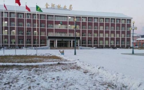 11月3日,根河市金河鎮(zhèn)林業(yè)局的門前堆滿積雪,天寒地凍。