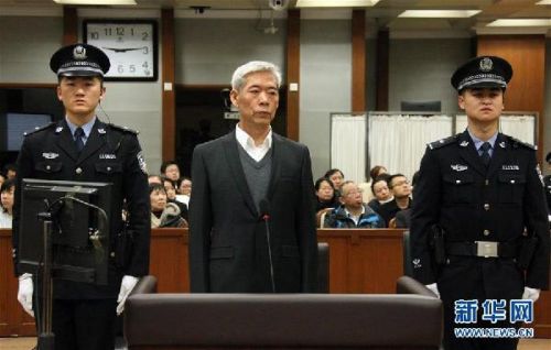 11月24日,被告人楊棟梁(中)在庭審現(xiàn)場。新華社發(fā)(王鑫剛 攝)