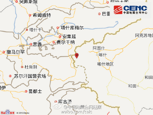 中新網11月25日電 中國地震臺網正式測定:11月25日22時24分在新疆克孜勒蘇州阿克陶縣(北緯39.27度,東經74.04度)發生6.7級地震,震源深度10千米。