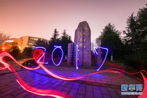 12月30日晚,在湖南省衡陽市南華大學校園,大學生攝影愛好者用光繪攝影創作出“2017”字樣,迎接新年的到來。