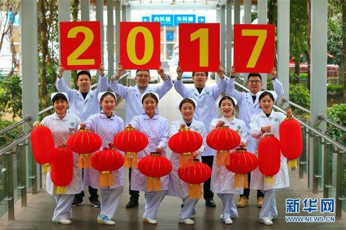 12月31日,四川省遂寧市中心醫院的醫務工作者手提大紅燈籠,迎接新年的到來。