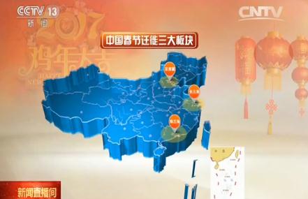 中國春節遷徙三大板塊分別是京津冀、長三角、珠三角三大城市群。以地域而言,春運期間客流總量排名前10名都是勞務輸出大省、勞務輸入大省:廣東、江蘇、河南、四川、浙江、安徽、湖南、廣西、北京和江西。按城市的客流總量排名,北京、上海、廣州占前三甲,深圳、成都緊隨其后。