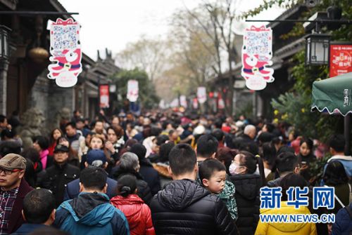 1月28日,游客在四川成都寬窄巷子景區(qū)內(nèi)參觀。經(jīng)國家旅游局?jǐn)?shù)據(jù)中心綜合測算,1月28日全國旅游接待總?cè)藬?shù)達(dá)6520萬人次,同比增長14.7%;實(shí)現(xiàn)旅游收入760億元,同比增長14.5%。新華社記者 薛玉斌 攝