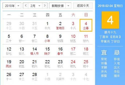農歷臘月十九(2018年2月)