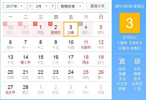 農歷正月初七(2017年2月)