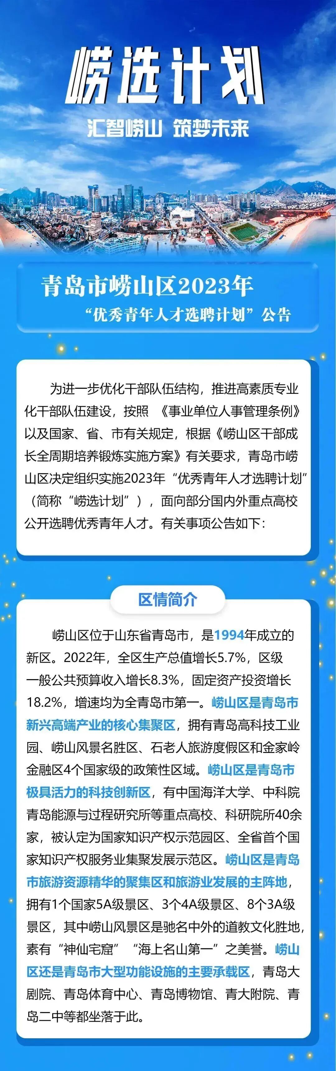 210名,事業編制!青島這兩個區發布最新公告 2023-03-04 09:07 0 3月2日,嶗山區發布“嶗選計劃”,選聘40名優秀青年人才統籌安排到嶗山區區直部門或街道所屬事業單位。 3月3日,城陽區發布了2023年“城選計劃”選調公告,計劃選調事業編制優秀青年干部人才170名。 來源:勤嶗為公微信號、城陽區政務網 責任編輯:崔現香