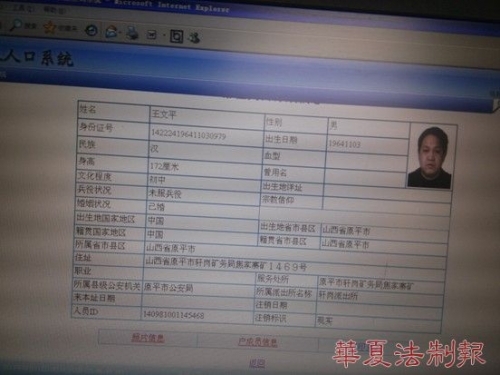 死者王文平的戶籍信息