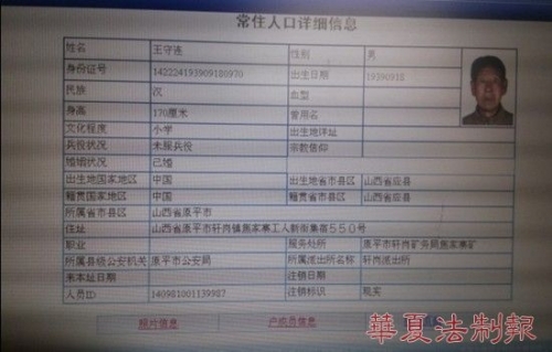 死者王守連的戶籍信息