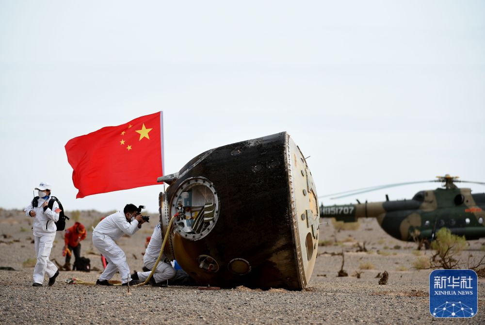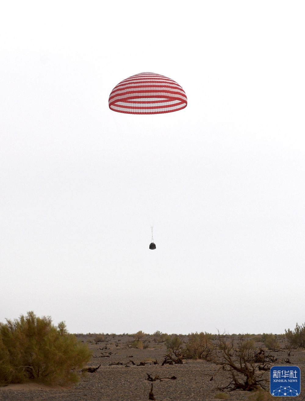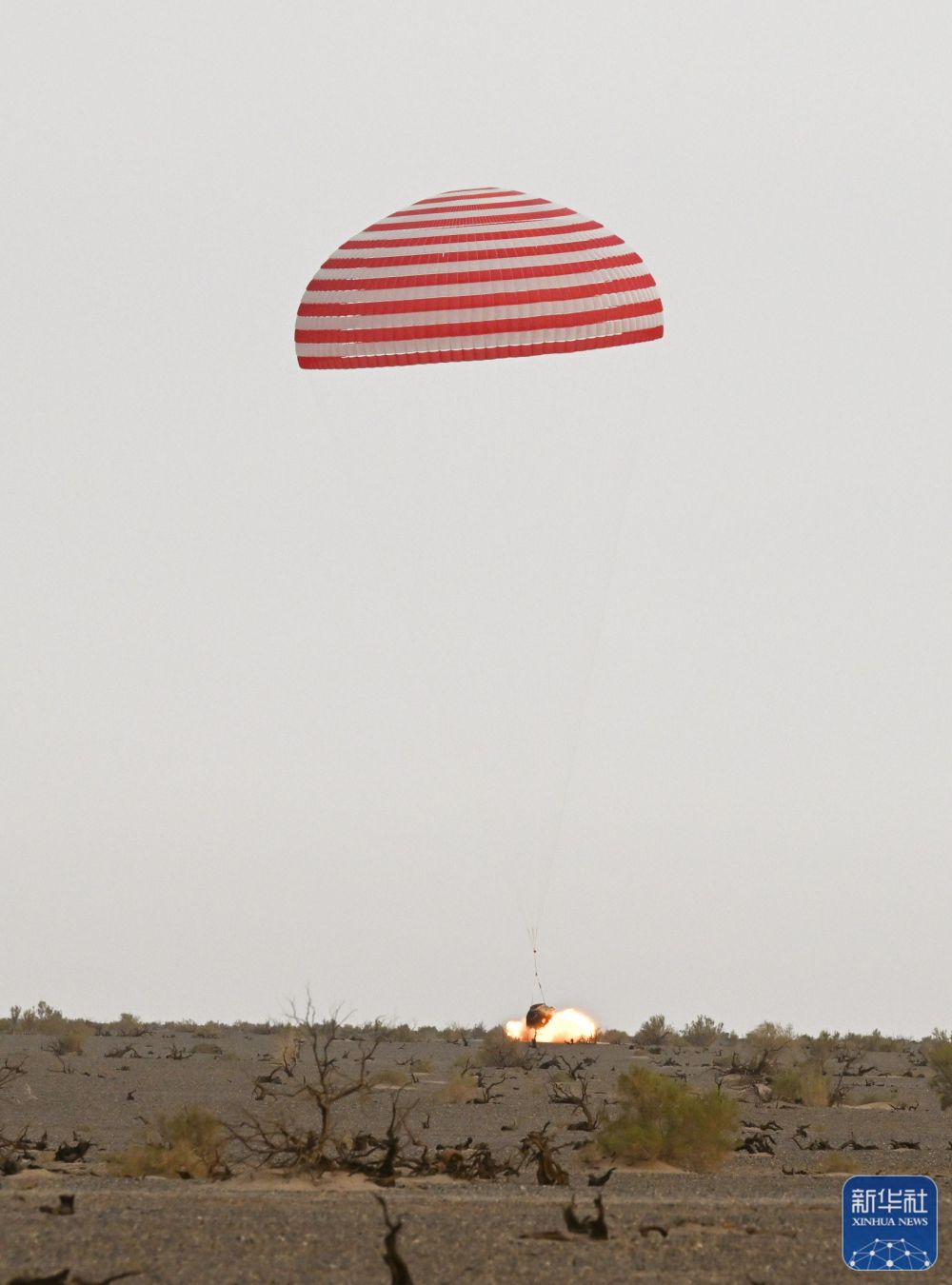 6月4日,神舟十五號載人飛船返回艙在東風著陸場成功著陸。新華社記者 連振 攝