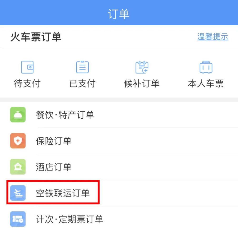 點(diǎn)擊“空鐵聯(lián)運(yùn)訂單”即可查看