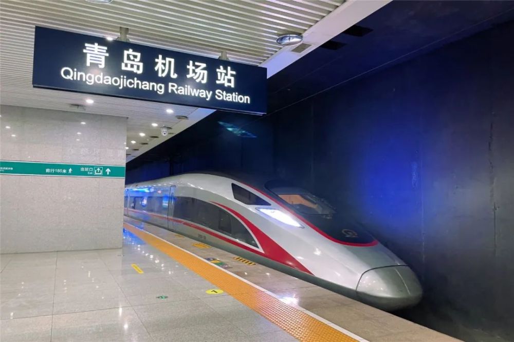 濟(jì)青高鐵上的青島機(jī)場站是青島膠東國際機(jī)場配套建設(shè)的無縫換乘站,位于青島膠東國際機(jī)場航站樓地下,規(guī)模為2臺4線,站廳層為地下一層,站臺層為地下二層,與航空、地鐵、公交、出租等交通方式無縫銜接,最大限度方便旅客出行。