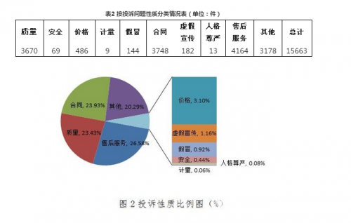 在汽車投訴性質方面,售后服務是汽車投訴重災區。在2016年汽車投訴中,售后服務投訴共4164件,合同投訴3748件,質量投訴3670件,價格投訴486件,安全投訴69件,虛假宣傳投訴182件,假冒投訴144件,人格尊嚴投訴13件,計量投訴9件,其他投訴3178件。售后服務問題、合同爭議和產品質量是引發投訴的主要原因,超過投訴總量的70%。