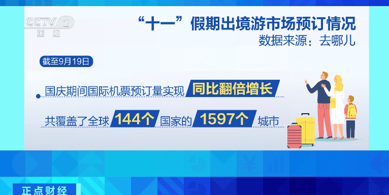 記者了解到,隨著“十一”假期到來,國內和出境長線旅游市場都迎來了迅猛增長。旅游預訂平臺數據顯示,截至9月19日,國慶期間的國際機票預訂量已經實現了同比翻倍增長,共覆蓋了全球144個國家的1597個城市,其中,三線及以下城市居民的預訂量同比增長了2.5倍。此外,多樣的文化活動如藝術展覽、音樂會等,吸引著眾多中國游客。在民宿預訂平臺上,具有“葡萄園”“城堡”“農場”等特色的住宿備受歡迎。
