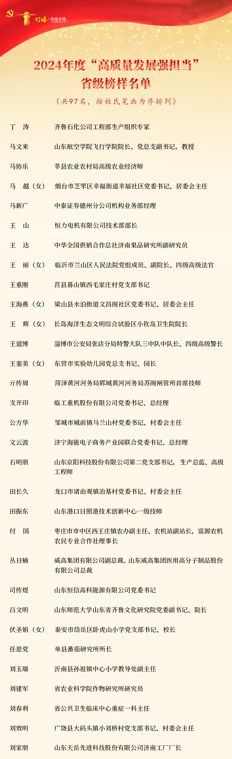 全省各級黨組織和廣大黨員要深入學習貫徹黨的二十屆三中全會精神和習近平總書記視察山東重要講話精神,以榜樣為引領,激發奮進力量,立足崗位、學習榜樣、爭做榜樣,充分發揮基層黨組織戰斗堡壘作用和黨員先鋒模范作用,為奮力譜寫中國式現代化山東篇章貢獻力量!