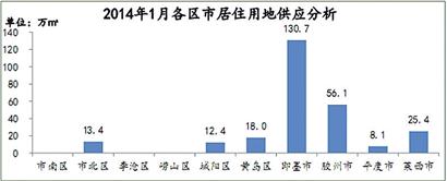 上周五,位于市北區瑞安路、海岸路兩幅旺角地塊登臺拍賣,兩塊地遭到了哄搶,其中瑞安路地塊更是以總價12億元成交,溢價近三成。據高策數據中心提供數據顯示,2014年1月份我市土地供應以居住用地為主,供應58宗,占總供應量的55%,供應區域以即墨為主。據業內專家介紹,調節市場供需矛盾以及房價上漲的手段之一即為增加土地供應。