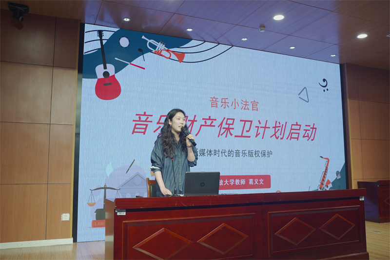 活動中,宣講團教師通過聲音劇場、經典案例剖析和角色扮演等多樣化的教學形式,深入淺出地講解了版權保護的要點,并通過互動與實踐,引導學生深刻領會法治精神的內涵與價值。課程以法治精神、社會責任與人文關懷為思政內核,用生活化比喻拆解版權知識、理解法律對靈感的守護,助力每位學生感知到無論是否看得見,每一段旋律都值得被珍視,每一次靈感跳動都擁有法律與道德的力量。