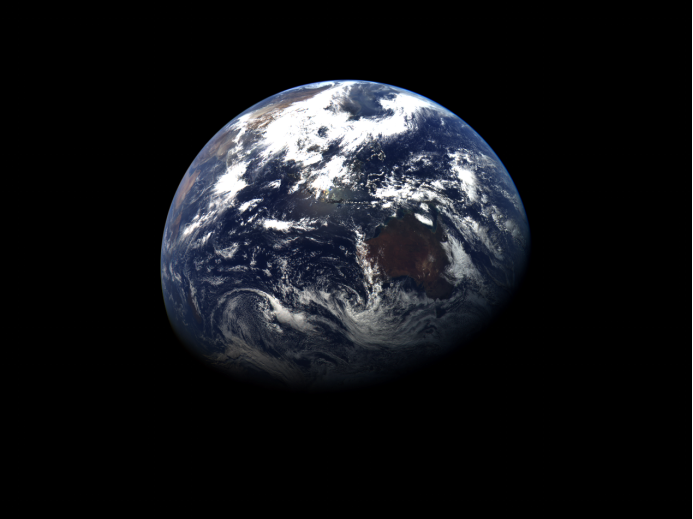 該地球彩色圖由天問二號(hào)探測(cè)器的窄視場(chǎng)導(dǎo)航敏感器于2025年5月30日13點(diǎn)拍攝,經(jīng)輻射校正、紅綠藍(lán)(558-631nm、500-573nm、434-477nm)三波段圖像配準(zhǔn)和彩色合成處理后制作而成。拍攝時(shí)器地距離約59萬千米