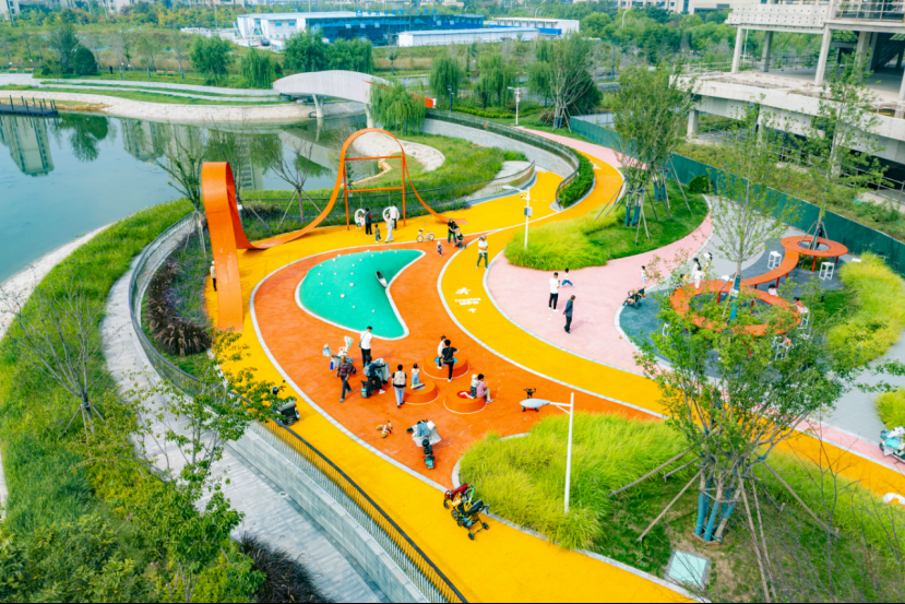 公園內(nèi)鋪設(shè)了環(huán)湖跑道,配備了休憩設(shè)施與兒童活動(dòng)區(qū)域,還種植了多種喬灌木與地被植物,形成四季有景的植物群落。公園的開放不僅為區(qū)域增添了生態(tài)底色,更與周邊教育、醫(yī)療等配套聯(lián)動(dòng),構(gòu)建起“15分鐘生活圈”的核心支點(diǎn),進(jìn)一步激活了城市空間價(jià)值,提升了居民的生活品質(zhì)。